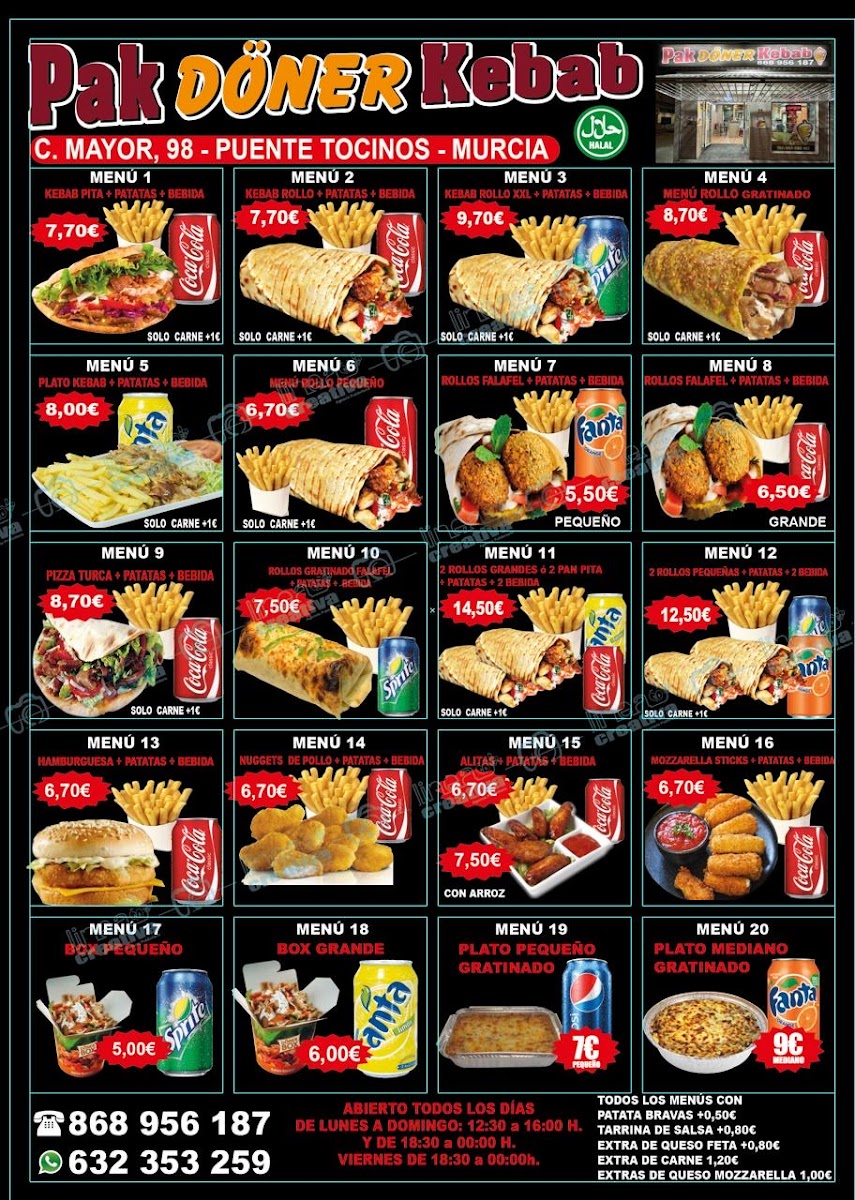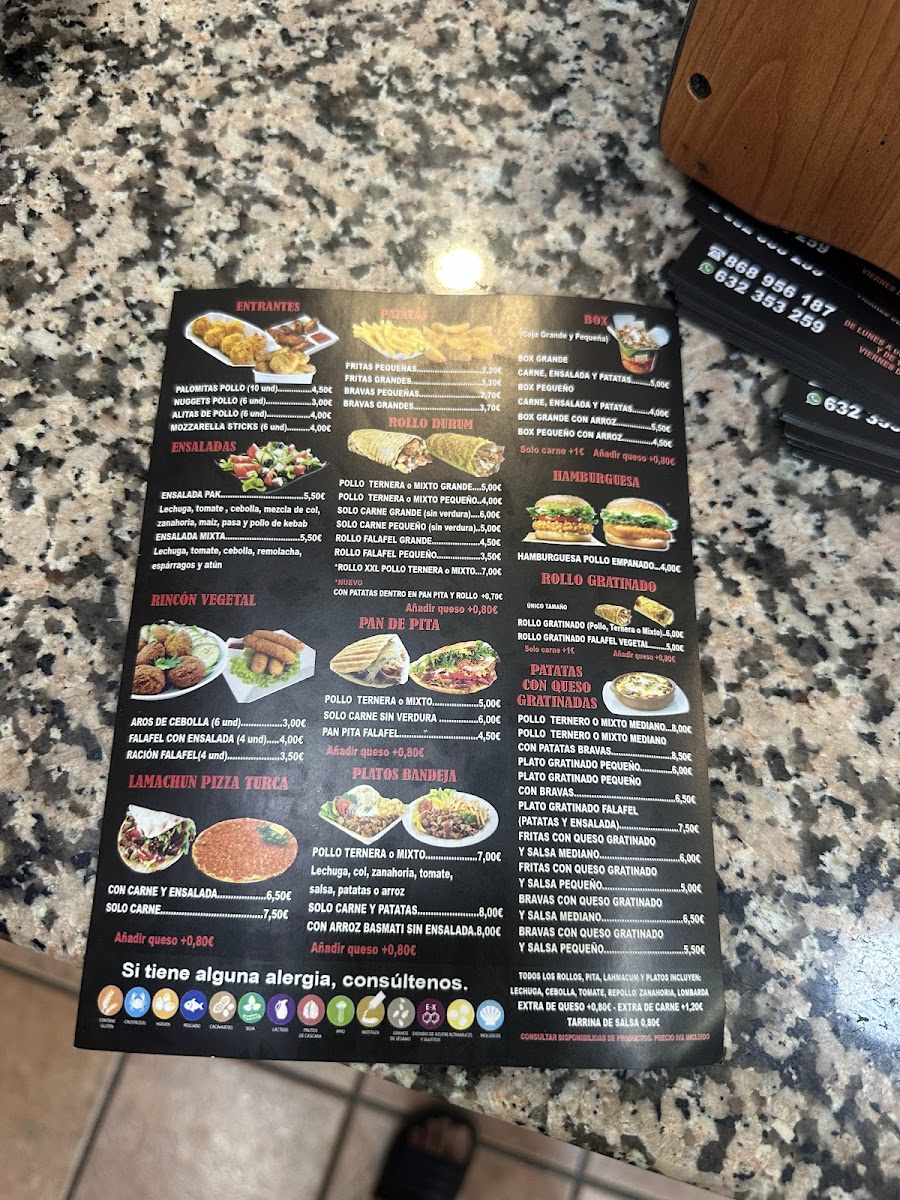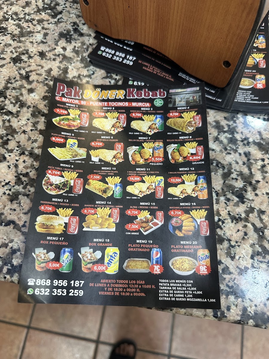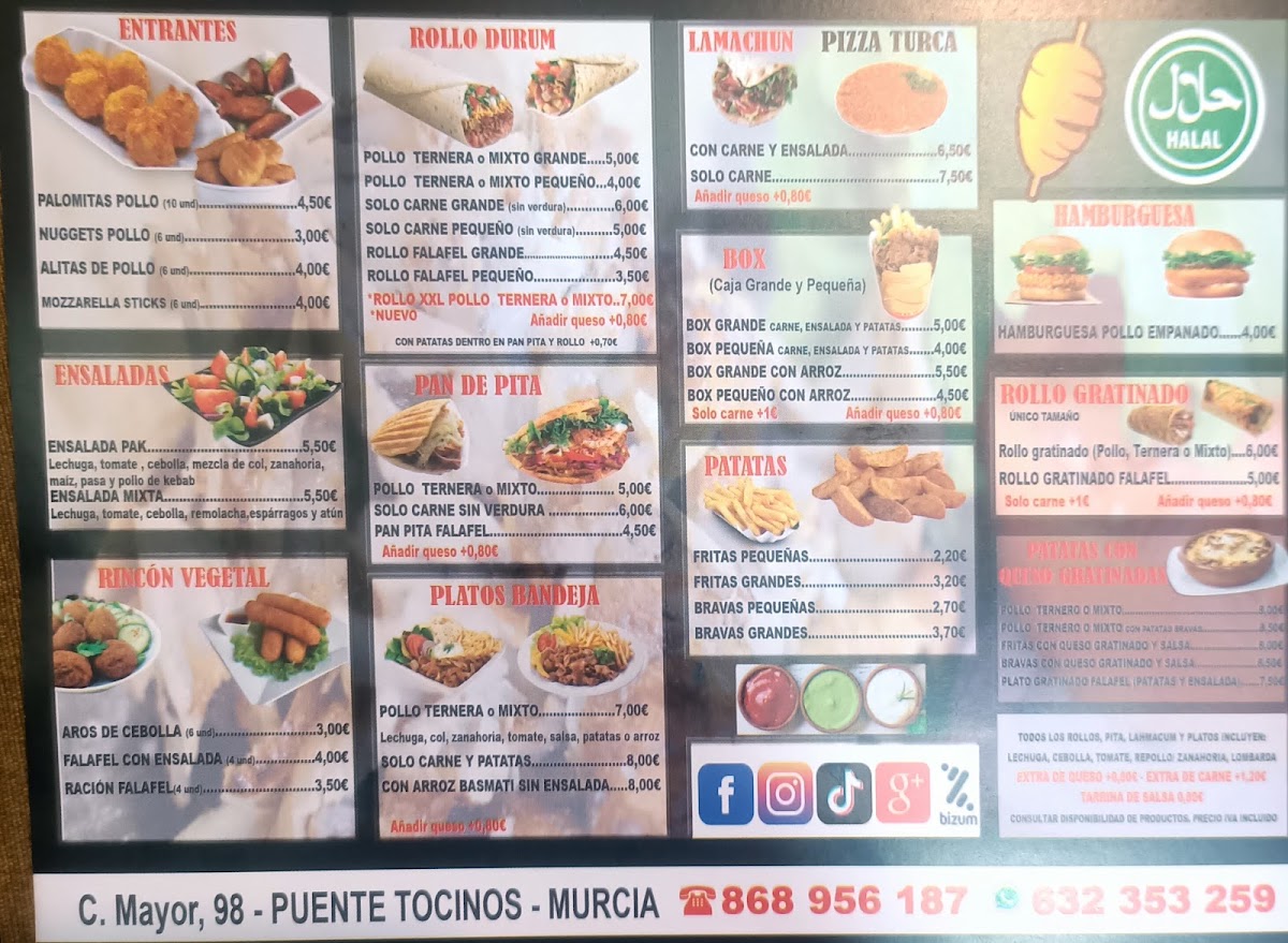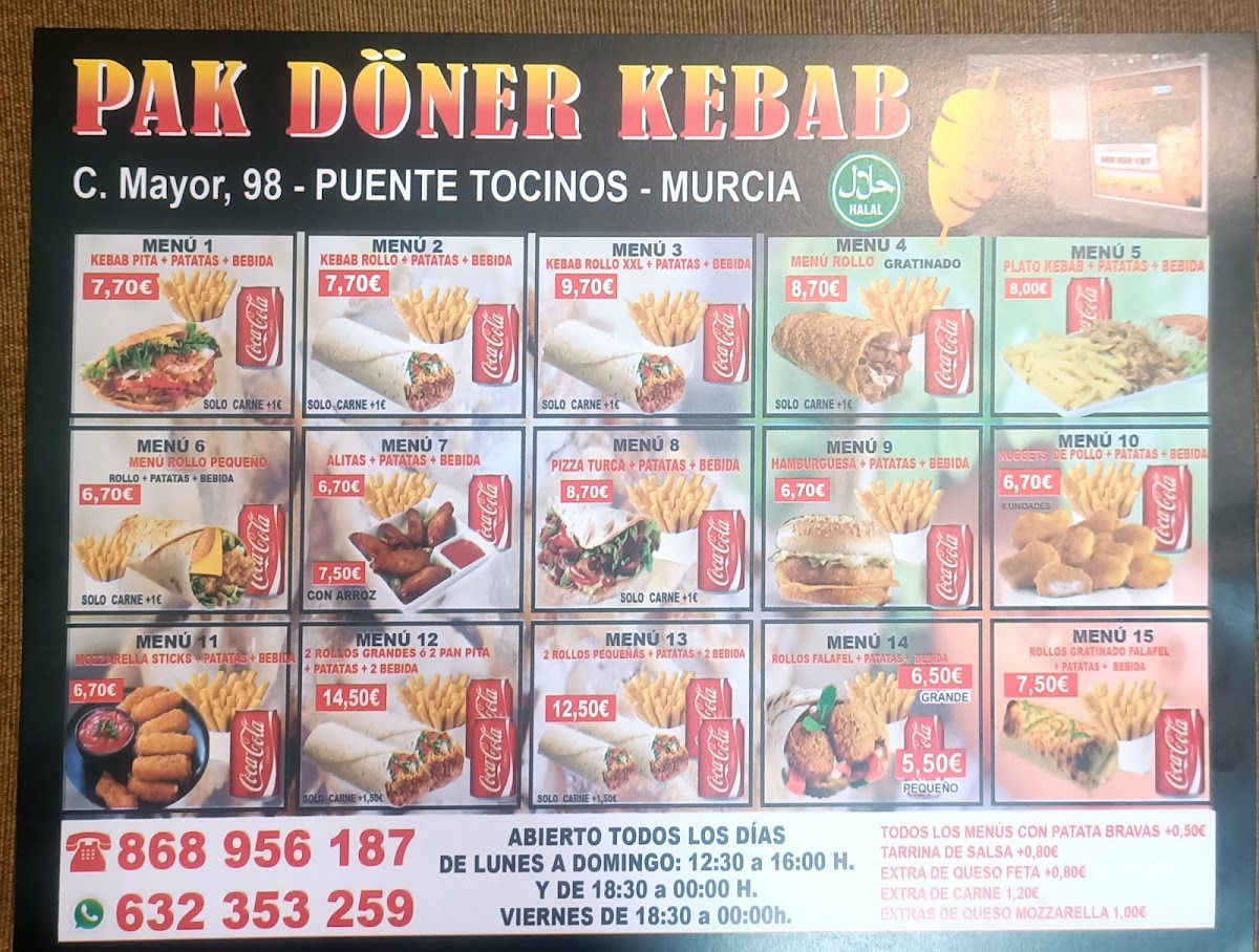 Pak Döner Kebab حلال in Puente Tocinos, Murcia, offers a delightful Turkish dining experience centered around authentic döner kebabs and flavorful grilled meats. This cozy spot shines with its fast, attentive service and perfectly balanced prices, making it a favorite among locals. The menu highlights succulent kebabs, boasting tender, well-seasoned meat that bursts with rich, smoky flavors, often praised as the best in the area. Spicy options add a vibrant kick, appealing to those seeking bold tastes. Beyond kebabs, the restaurant also serves expertly cooked rolls that combine quality ingredients with traditional Turkish flair. The warm, welcoming atmosphere and friendly staff make every visit enjoyable, though a bit of cooling improvement is suggested for comfort. Overall, Pak Döner Kebab حلال stands out as a must-visit for anyone craving genuine Turkish street food that delivers on taste, value, and hospitality.